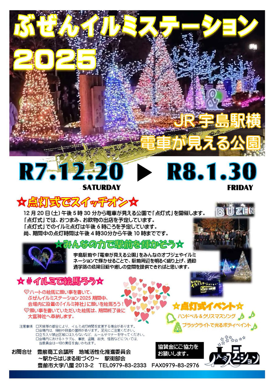 宇島駅横の「電車が見える公園」を舞台に、今年も光の祭典が開催されます!